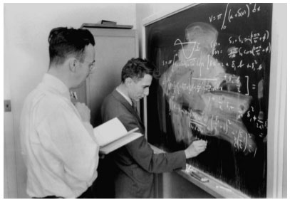 Figure 3 : Shannon (au tableau), mathématicien et ingénieur à la fois (coll. Nokia Bell Labs).