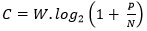 Enfin, cet article est resté célèbre pour une formule établie dans son fameux théorème 17 qui donne l'expression suivante de la capacité de canal :