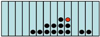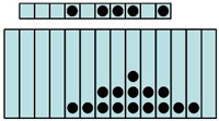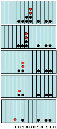 Étape 2 : Deuxième décalage, correspondant au chiffre 1 suivant. On se décale d’une autre colonne vers la gauche et on injecte les billes, qui viennent se superposer à celles qui étaient déjà là.