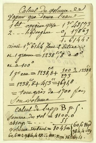 « Calcul du volume de vapeur que donne l’eau », carnets manuscrits de Gay-Lussac (site NUMIX