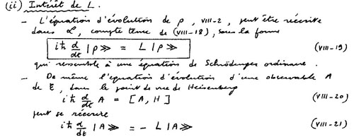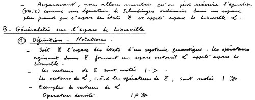. Il est défini, dans cet espace d’opérateurs, un opérateur particulier, le Liouvillien (ou « opérateur de Liouville ») : à partir de l’opérateur hamiltonien H agissant dans l’espace des états ε, on définit l’opérateur de Liouville L agissant dans l’espace