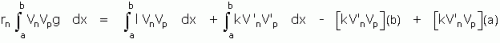 En écrivant, en effet, que vn est solution de (A) pour la valeur rn sous la forme rngVn = lVn – [kV’n]’ on multiplie par Vp et on intègre de a à b
