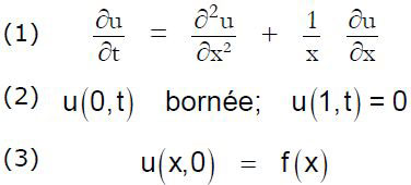 Quitte à renommer ρ en x pour mieux pouvoir comparer nos écritures dans les différents cas, la température u (x,t) est donnée par les équations (1), (2) et (3)