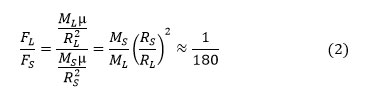 Ceci montre que l’effet gravitationnel de la Lune sur une masse terrestre est d’environ 1/180e de celui du Soleil.
