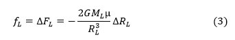 La façon dont les forces d’attraction varient entre « face avant » et « face arrière » de la Terre est liée au gradient de la force d’attraction. On l’obtient par dérivation de la force FL par rapport à la distance :
