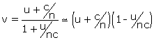 Max von Laue indique que pour u << c, un développement au premier ordre donne :