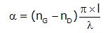 Fresnel montre qu’en décomposant une onde polarisée rectilignement en la somme de deux ondes polarisées circulairement droite et gauche, celles-ci ne se propagent pas à la même vitesse dans un milieu chiral5. On obtient la loi de Fresnel sur la biréfringence circulaire qui relie le pouvoir rotatoire d’une substance chirale à l’indice de réfraction des deux lumières droite et gauche. La loi de Fresnel donne l’expression de l’angle en fonction de la différence (nG – nD), où nG et nD sont respectivement les indices de réfraction pour la lumière polarisée circulairement gauche (notée LPCG) et pour la lumière polarisée circulairement droite (notée LPCD), la longueur de la cuve / et la longueur d’onde étudiée λ. La grandeur (nG – nD) s'appelle la biréfringence circulaire.