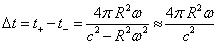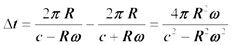 Soient t+ et t- les durées des trajets de chacun des signaux mesurées dans le référentiel du laboratoire (en notant + le signal émis dans le même sens que la rotation du disque). Les longueurs parcourues par rapport au laboratoire sont :