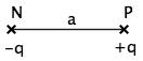 En électromagnétisme, un dipôle est schématisé par un couple de deux charges opposées, - q et + q, que sépare une courte distance a (figure).