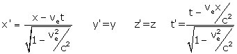 e : vitesse du référentiel R’ par rapport à R ; c : vitesse de la lumière dans le vide) :