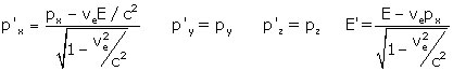z, E/c. Dans la transformation de Lorentz pure écrite ci-dessus, ce quadrivecteur acquiert pour composantes p’