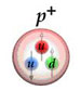 Figure 11 : Le proton est constitué de deux quarks up et d'un quark down, le neutron d'un quark up et de deux quarks down (images ©3xplus.com, site Voyage dans l’infiniment petit, ENS/ I. Pavel).