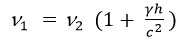 Si le rayonnement émis à l’intérieur du référentiel uniformément accéléré K’ depuis le point S2 en direction du point S1 était de fréquence par rapport à l’horloge en S2, alors, à son arrivée en S1, il n’aura plus la fréquence par rapport à une horloge identique en S1, mais une fréquence augmentée , telle que, en première approximation :