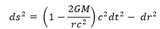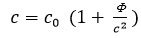 Si nous notons la vitesse de la lumière à l’origine des coordonnées c0, alors la vitesse de la lumière en un point où le potentiel gravitationnel est sera donnée par la relation