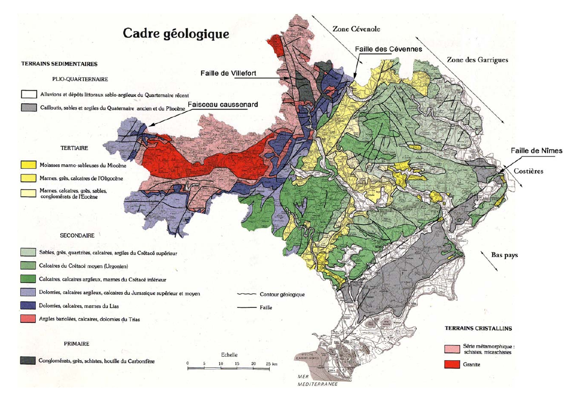 Figure 5 : Carte géologique du Gard (reproduit avec l’aimable autorisation de J.-P. Rolley, Géologie du département du Gard, PDF en ligne).