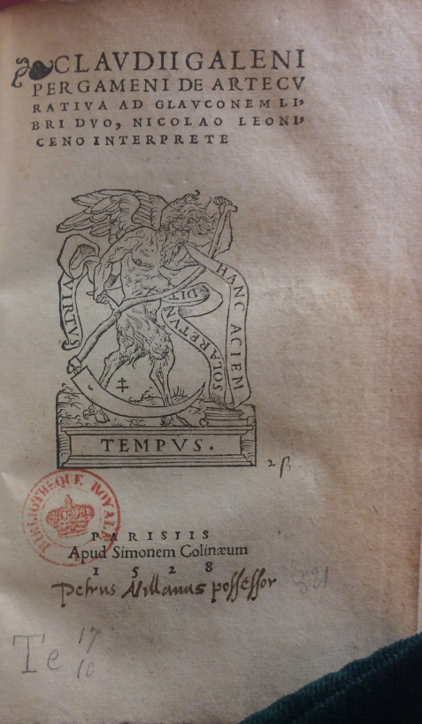 21. Claudii Galeni Pergameni De arte curativa ad Glauconem libri duo, Nicolao Leoniceno interprete (Paris : Apud Simonem Colinaeum, 1528).