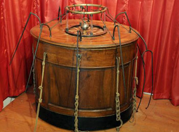 Figure 2 : Un baquet de Mesmer. Il s’agirait là du seul exemplaire conservé de ces fameux baquets. Il se trouve au Musée d'Histoire de la médecine et de la Pharmacie, à Lyon (photo ©Éric Le Roux/Communication/Université Claude Bernard de Lyon).