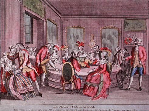 Mesmer’s animal magnetism (from anima, “breath, spirit”) was all the rage in Parisian salons during Mesmer’s brief residence in France, from 1778 (when he arrived from Austria, aged 44) to 1785, when, discredited, he left the country. No more would be heard of him until his death 30 years later in Baden.