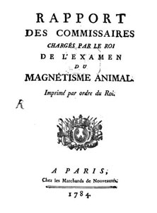 « Rapport des commissaires chargés par le Roi de l'examen du magnétisme animal », chez les Marchands de nouveautés (1784), en ligne @medica (BIUSanté).