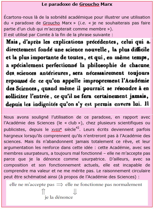 [36]. Pointons à nouveau le fait, comme en note 6 ci-dessus, qu’une phrase de Comte a souvent une double lecture : générale, mais aussi le décrivant lui-même (le général pour décrire le particulier) ; ceci peut être facilement utilisé par ses détracteurs – nous avons essayé de ne pas tomber dans ce travers, mais souhaitions montrer ce double sens de la phrase comtienne, à certaines occasions.
