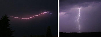 Figure 3 : Éclair internuageux (à g.) ; éclair nuage-sol (à dr.).