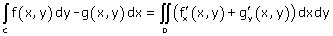 (18) La formule de Green (du nom de George Green 1793-1841) donne la relation entre une intégrale curviligne autour d'une courbe simple fermée C et l'intégrale double sur la région du plan D délimitée par C : ![]()